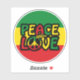PEACE and LOVE, typographic design with peace symbol and reggae style, with reggae rastafari flag colors.