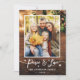Peace and Love Rustic Country String Lights Photo Holiday Card