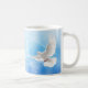 Classic mug featuring two white doves on an artistic blue galaxy and light sky background. A beautiful message of light and love as a daily support at tea or coffee time.