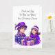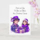 Pretty watercolor Christmas holiday card. Adorable little vintage kids in purple old fashioned clothes.
