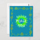 Gold and Purple (Border): The floral border features gold flowers and purple accents, creating a visually appealing contrast against the teal background.