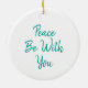 Beautiful Christmas message ornament Peace Be With You. On the other side the ornament features a white dove carrying an olive branch.