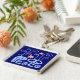 Key chain design in blues and orange with the word, "peace", a peace sign, swirls, and flowers.