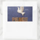 photo of white dove with the word peace in letterpress wood letters on a blue, sparkly background