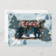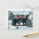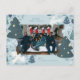 A whimsical Christmas photo card features illustrations of doves and winter trees.