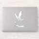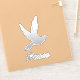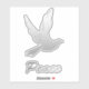 Sticker in a dove and the word peace in a silver, metallic effect gradient