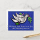 The message is peace. The illustration is a beautiful dove with a sprig of holly on a blue background. The text reads Wishing you peace and joy this holiday season. Buy one or a hundred. Fully customisable, add your own greeting, personalise to your heart's content.