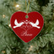 Two white doves carry olive branches in this elegant, peaceful Christmas ornament. It is completely customisable. Change the text and/or background colour, if you wish.