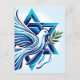 This stunning piece features a graceful dove in mid-flight, its wings outspread and a vibrant green olive branch held delicately symbolising hope. The dove, rendered in soft white tones, contrasts beautifully against the backdrop of a bold, solid blue Star of David, which captures the eye and heart with its depth and significance.