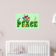 Flowers grow from the chipped and worn stone carved Peace to show that out of war and hate grows peace and tolerance if enough anti-war flowers spread their roots.