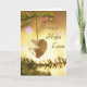 Beautiful crystal heart ornament hanging on the tree, with holiday wishes.