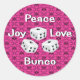 Here is an inspirational graphic design for you to share with other bunco players. This positive message states: Peace, Joy, Love and Bunco. Buy one as a gift or prize. Personalise with your own name, group name or date.