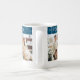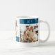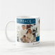 Minimalist crystal teal peace joy love lettering 3 photo collage script holiday coffee mug. Customize this mug with 3 photos and a personalized greeting.