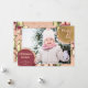 Peace & Joy, Pink, Burgundy, Gold Poinsettia Photo Holiday Card
