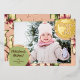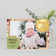 Peace & Joy, Pink, Green, Gold Poinsettia Photo Foil Holiday Card