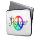 Rainbow peace sign typography design with butterflies and swirls of colour.