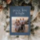 This Holiday Card features a photo on the front and 3 photos on the back. For this design all text is editable, as well as colour of text and background.