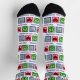 A cute accountant holiday gift featuring a peace sign, heart, and calculator. Peace Love Accounting socks for a CPA to send out for marketing during the Christmas season.