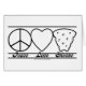 Peace Love and Cheese. A humourous take on the Peace and Love theme for Wisconsinites and anyone who loves cheese. Simple black and white logos featuring a peace sign, heart and cheese wedge on t-shirts, sweatshirts, hoodies, mugs and more gift and clothing items from T's Me NOW! Customise it!