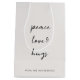 Simple, stylish, minimalist holiday gift bags with modern informal casual handwritten script typography quote "Peace Love & Hugs" in black with a dove grey background. The name can be easily customised for a personal touch. A elegant, minimalist and contemporary christmas design to stand out from the crowd this holiday season! #christmas #minimal #giftbag