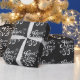 Customisable holiday gift wrapping paper featuring whimsical script of "PEACE, LOVE AND JOY" and a chalkboard background.