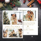 Modern Peace, Love & Joy Script 4 Photo Collage Christmas Card in Gold and White. This minimalist Christmas card features a 4 photo grid collage on the front and an extra photo on the back. The "Peace, Love & Joy" greeting is elegantly hand-lettered in gold calligraphy on a clean white background, offering a chic and modern touch to your holiday message. The back includes a customisable greeting template with a heart doodle motif and space for one additional photo. Perfect for sharing festive cheer with family and friends, this personalised card is an ideal way to celebrate the holiday season in style.
