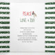 Peace love and joy, trees and ornaments green Tri-Fold holiday card
