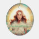 This Christmas ornament showcases a tranquil scene with a meditating woman and flowing hair, exuding "Peace, Love, and Positivity." Hang it on your tree to infuse your holiday season with serenity and goodwill.