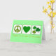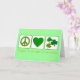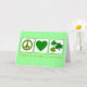 'Peace, Love and Shamrocks' is a design that is perfect for St. Patrick's Day. Celebrate this Irish holiday with this simple yet festive design.