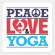 State what's really important to you with this sticker featuring the words "Peace, Love, and Yoga". The letter "c" in the word peace is substituted with a peace sign, while the heart standing in for the letter "O" in love, contains a silhouette of a woman doing a yoga pose. Available with matching products.