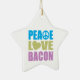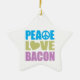 Peace Love Bacon...What else do you need in life? Perfect gift for any bacon addict. It doesn't matter if you're a trained professional chef who has created a restaurant or a menu around bacon, you're a foodie who loves the chocolate covered bacon craze, you're constantly creating new recipes featuring bacon, you have bacon everyday for breakfast, you've tried every variety of bacon out there whether it's thick cut, applewood smoked bacon, sage bacon, or even cinnamon bacon, you have a pig tattoo, your fridge is packed full of slabs of bacon, or you raise pigs on a farm for bacon products...you're addicted to bacon! Funny gift idea for any bacon lover. A must have for any bacon diva. Design features a heart and a peace sign. See our shop for more fun and unique Peace Love...shirts and gifts.