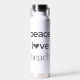 Make a statement with this Peace • Love • Beach graphic print water bottle. Designed for anyone who lives in good vibes, flip flops and a coastal mentality. This bottle is simple, uplifting, and soon to become a favorite staple in your day.