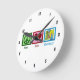 A peace sign, heart, and chem beakers make a cute clock for a science classroom.