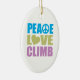Peace Love Climb...What else do you need in life? Perfect gift for any climbing addict. It doesn't matter if you're trained in rock climbing, you're a rock climbing teacher or your guide, you are constantly climbing the rock wall at your gym, you dream of climbing mountains some day, you have scaled cliffs, gourges, mountains, etc., your vacation usually takes you to a new climbing destination, you love the thrill and adrenaline you get from rock climbing, you love extreme sports, or you're just a kid that loves climbing trees, counter tops, furniture, or anything else that will sit still...you're addicted to climbing! Funny gift idea for any climber. Great for any climbing diva. Design features a heart and a peace sign. See our shop for more fun and unique Peace Love...shirts and gifts.