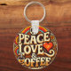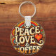 Peace, Love, & Coffee Retro Keyring