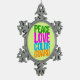 A cute colorguard gift that reads Peace Love Colour Guard in cool neon distressed font on a yellow background.
