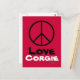 If the Welsh Corgie is your favourite dog breed, you'll like our Peace Love Corgie Postcard! Volume discounts available.