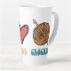 ndulge in your favourite brew with our stylish Peace, Love, Crochet Latte Mug. Perfect for avid crocheters and coffee enthusiasts alike, this mug brings together comfort and creativity in one charming package. Available in two generous sizes—12-ounce and 17-ounce—this conical-shaped mug with an ear-shaped handle is both microwave and dishwasher safe, ensuring easy maintenance. Crafted from strong ceramic, it meets FDA requirements for food and beverage safety, making it a delightful and practical addition to your kitchen.