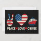 Peace sign, heart and cruise ship. A playful cruise theme for ocean lovers and fans of relaxed USA vacation vibes. Inspired by sunny getaways and freedom at sea.