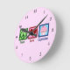 Peace Love Cupcakes Cute Pink Bakery Shop Round Clock