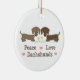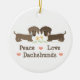 Show your love for your favourite breed of dog with this cute Peace Love Dachshunds design on t-shirts, tees, apparel and more doxie lover gifts for the whole family. Two adorable smooth short haired dachies stand in the grass and take time to smell the flowers. Click here to see all of our cute and original Chrissy H. Artwork © Chrissy H. Studios, LLC. All Rights Reserved.