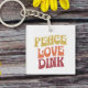 Ideal as a personal accessory or a thoughtful gift for a fellow pickleball enthusiast, the "Peace Love Dink" keychain is a small yet stylish statement of your love for the game. With its durable construction and eye-catching design, this keychain is made to last, just like your passion for pickleball.