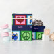 Cool wrapping paper for a drummer featuring a peace sign, heart, and a set of drums. An awesome drumming gift wrap for someone who rocks out in a band.