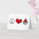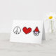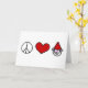 Features a fun cartoon drawing of a peace sign, a red heart, and a gnome with a red hat.