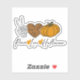 This cute contour sticker features a skeleton hand peace sign, a leopard pattern orange and black heart and an orange pumpkin. The trendy script text reads: Peace, Love, Halloween, with orange hearts between the words.