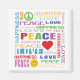 Peace Love Happiness words in various colours and fonts. Peace symbol, heart shape and smiley face all combine for a happy, loving and peaceful gift!