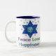 Hearts, Star of David, and the words "Peace Love Happiness" are a lovely way to say Happy Hanukkah.