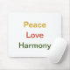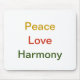 Peace Love Harmony. This is a nice saying for a season's greeting or any time of the year. Red green gold minimalist design.