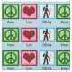 A peace sign, heart, and a hiker. I love hiking on trails and camping. A great outdoors person gift.