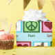 Beautiful horse wrapping paper for an equestrian birthday. A peace sign, heart, and pretty horses pattern for horseback riding gifts.